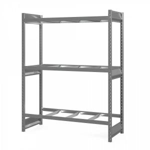 - Стеллажи СГ без настила рассчитаны на вертикальное хранение шин, особенно актуальное в сервисных автоцентрах, шиномонтажных пунктах, гаражах, автомагазинах, на складах запчастей. Также этот вид стеллажей удобен для любых круглых грузов (катушек кабелей, рулонов, бобин) и длинномерных и нестандартных грузов.