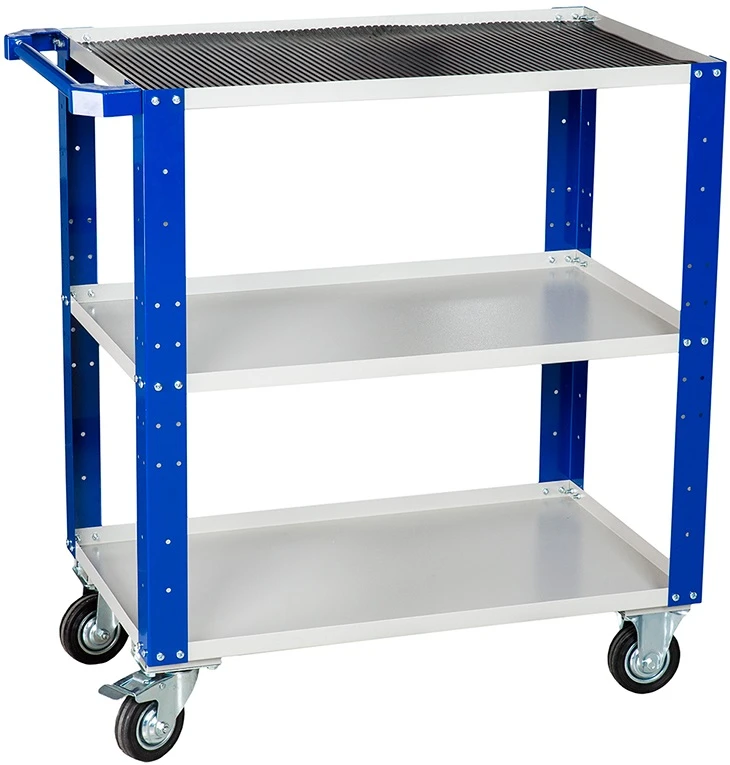 Предназначена для удобного хранения и перемещения инструментов на фабриках и заводах, в мастерских и автосервисах. Тележки WDS изготовлены из высокопрочной стали и выдерживают нагрузку на полку и крышки тележки до 40 кг. Максимальная нагрузка на тележку до 100кг. Тележки комплектуются поворотными резиновыми колесами, одно колесо снабжено стояночным тормозом (диаметр колес 100 мм). Верх тележек покрыт резиновым маслостойким ковриком. Поставляются в разобранном виде ** - допустимое отклонение +/-10 % от веса изделия.